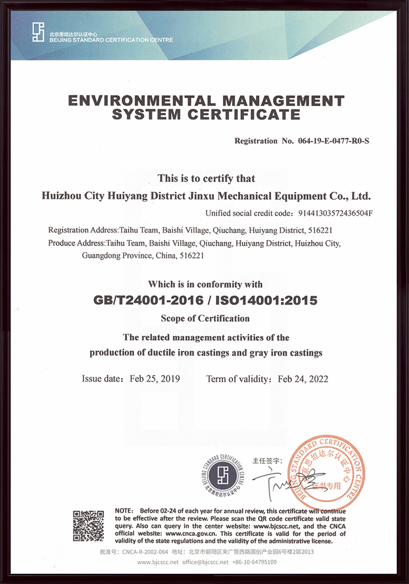 惠州市惠陽區(qū)金旭機(jī)械設(shè)備有限公司(原名深圳金泉鑄造廠),始建于1992年2月,公司坐落于惠州市惠陽區(qū)秋長(zhǎng)白石大湖工業(yè)區(qū),是一家集模型、鑄造、機(jī)械加工于一體的綜合型企業(yè),主要生產(chǎn)高強(qiáng)度高韌性球墨鑄鐵、灰鑄鐵及鑄銅、鑄鋁等各種材質(zhì)及牌號(hào)鑄件。